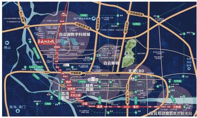 白云湖·品实云湖花城坐落于广州白云湖数字科技城核心板块。该区域作为广州科技创新轴的关键节点,是政府重点打造的千亿级数字经济产业集群。目前已有华为、软通动力等超200家科技企业入驻,未来将吸引约10万高精尖人才汇聚。随着产业升级与配套完善,区域发展潜力巨大,居住价值与日俱增。