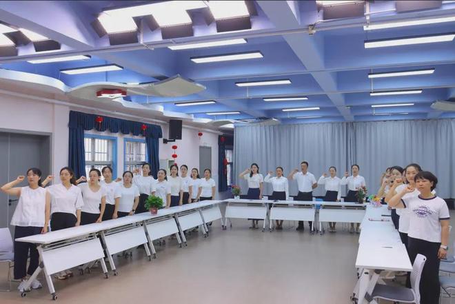 我志愿成为一名光荣的人民教师……全体教师肃立注目,右手举拳,在副园长田鹏翼的带领下庄严宣誓。铿锵有力的誓言在会场回荡,每一句承诺都是一份沉甸甸的责任,彰显着老师们践行师德、爱岗敬业、无私奉献的坚定信念。这一刻,教育家精神内化于心、外化于行,凝聚成推动学前教育高质量发展的共同意志。