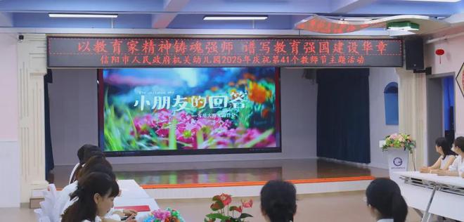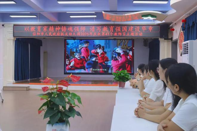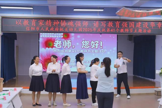 金秋送爽,师韵流芳。在第41个教师节来临之际,信阳市人民政府机关幼儿园总园区、政童园区、政一园区教职工代表齐聚一堂,以以教育家精神铸魂强师 谱写教育强国建设华章为主题,隆重举行教师节庆祝活动。整场活动庄重而温馨,展现了新时代幼儿教师的精神风貌与使命担当。
